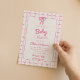 Pink Hand Drawn Bow Gingham Boho Girl Baby Shower Inbjudningar