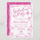 Pink Hand Drawn Doodles Graduation Fun White Party Inbjudningar