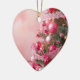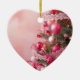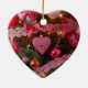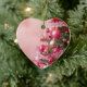 This is a sure keepsake. The pretty pink flowers are on a heart-shaped ceramic ornament.