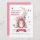 Adorable pink birthday invitation for any child who loves hedgehogs.