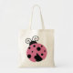 Cute pink ladybug with black spots and curly antennae. Customize by changing background color.