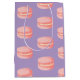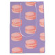 Sweet and delectable pink macarons elegantly displayed against a vibrant purple background.