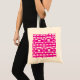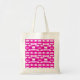 This budget bag features a striking geometric block pattern in alternating shades of pink, magenta, and white, creating a dynamic, contemporary design with a subtle three‑dimensional effect.