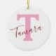 "Celebrate the holiday season in style with this Pink Monogram Christmas Ornament, personalized with your custom name or initials. Featuring a soft blush pink background and elegant lettering, this ornament adds a charming and sophisticated touch to any Christmas tree. Perfect for creating lasting memories, it makes a thoughtful gift for friends, family, or loved ones. Durable, lightweight, and beautifully crafted, this ornament is ideal for holiday décor, gift-giving, or keepsakes. Add a personal touch to your festive celebrations with this unique, custom holiday accessory."