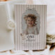 Celebrate your little one's Goose themed first Birthday with this easy to edit template. Featuring a playful wavy bow border with your own custom photo inside. There is a sweet little goose with a pink bow on it in the corner, along with 'One silly goose' typography, along with a pink stripy background.