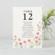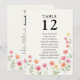 Guide your guests with ease and elegance using this beautiful watercolor-style floral seating chart. Featuring a charming display of pink, orange and yellow blossoms, this design adds a touch of natural beauty to your reception tables. The large, clear table number '12' is prominently displayed at the top, followed by a list of names. Whether you create a banner, board or place the cards on the individual tables, it's a simple and pretty way to ensure your guests can easily find their seats. This chart perfectly complements a garden party, rustic wedding, or any celebration seeking a whimsical and organic feel. Please browse my Wildflower Bloom collection for co-ordinating items.