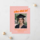 Pink Orange Retro She Did It Photo Graduation Meddelande