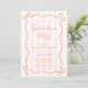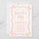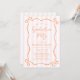 A trendy pink and orange graduation party invitation template, featuring a whimsical doodle bow frame and stripes. Easily add a photo to the back of the invitation. A fun design for a girl grad party!