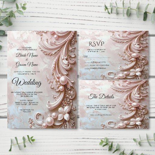 Beautiful Pink Ornate Pearl and Floral Thank You Card