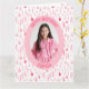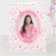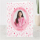 Make her big day unforgettable with this charming custom photo birthday card, perfect for celebrating a special girl turning another year older! Featuring an abstract pattern of watercolor-style pink designs on a white background, this card adds a pop of playful girly delight to the celebration. The soft pink oval frame highlights your child's photo, with her name and birthday greeting beautifully displayed in a whimsical font.