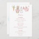 A Charming Delivery from Mr. McGregor's Garden! The menu features a sweet watercolor clothesline strung across the top proudly displaying tiny, adorable items, each subtly featuring Peter Rabbit. The back features the clothesline motif and a soft cloud. Easily add your own details and change the font style, size color and placement if you would like to. This menu is a beautiful detail, inviting your guests to share in the "hoppy" anticipation of your baby girl's arrival!