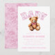 Pink Preppy Varsity Teddy Bear Baby Shower Inbjudningar
