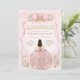 Celebrate her magical Sweet 15 with this elegant blush pink Quinceañera invitation featuring a luxurious bow detail, delicate floral arrangements, and a princess-inspired ball gown design.