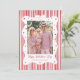 This whimsical pink and red valentine's day photo card is the perfect Valentine card to send out showcasing a photo. A whimsical design with a white and pale pink striped background and a hand drawn pink bow frame, dotted with red hearts frames a valentine photo, with an editable Happy Valentine's Day message in red text.