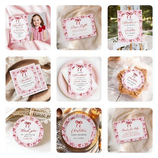 Pink Red Coquette Bow Valentine Baby Shower Pappersservett