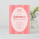 Pink Red Galentine's Party Invitation with a hand drawn bow and trendy stripes.