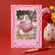 Pink Red Retro Wavy Scribble Child Photo Valentine Helgkort