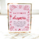 Guests bring diapers labeled with funny or encouraging messages for late-night changes, creating laughs now and smiles later for the parents-to-be. Display this sign on your gift or diaper table for a charming, organized setup. Coordinates beautifully with matching invitations, welcome signs, favor tags, menus, plates, napkins, and games from the full Valentine baby shower collection. 💌✨