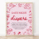 Pink Red Valentine Baby Shower Late Night Diapers Poster