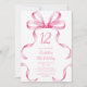 Pink Ribbon Coquette Bow 12th Birthday Invitation Inbjudningar