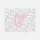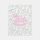 Pretty pink rocking horse with shades of pink and purple next to fun flowers