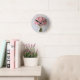 Pink Rose Bouquet Pearl Lace Romantic Rund Klocka