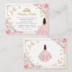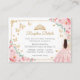 Pink, gold and white Quinceanera reception details enclosure cards. Features brunette girl in ball gown dress, script font, gold butterflies, blush pink roses and tiara. Perfect for an elegant princess style glam celebration. Personalize with your own details.