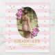 Pink Roses Striped Graduation Brunch Vinflaska Etikett