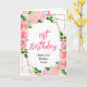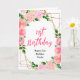 This beautiful and elegant birthday card features watercolor pink roses and foliage on a gold geometric frame. The text combines handwritten script and serif fonts for a stylish and modern look. This is perfect for a spring or summer rustic birthday.
