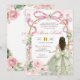 Pink Sage Coquette Bow Butterfly Quinceanera Invitation, Pink Floral Princess Sweet 16th Invite, Editable Mis Quince XV Años