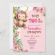 Pink Savannah Monkey Born Two Be Wild 2nd Birthday Inbjudningar