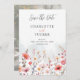 Pink Shades Spring-Inspired Rustic Boho Romantic Wildflowers Wedding Save the Date Cards with QR Code and Back Photo.