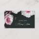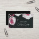 This elegant floral business card features delicate hot pink blossoms on a black background, perfect for creative and service-based professionals who want to make a stylish impression. The back side includes space for essential contact information and a QR code linking to your website, social media, or portfolio.