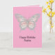 Pink Silver Butterfly Birthday Kort