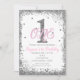 Pink & Silver Girls ONE 1-års födelsedagsfest Inbjudningar