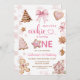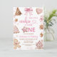 Pink Snowflakes Gingerbread Christmas 1st Birthday Inbjudningar