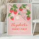 Welcome your guests in the sweetest way with this Berry First Birthday welcome sign! Featuring red strawberries, dainty white daisies, and a cheerful little bee on a soft pink background, this strawberry birthday party sign sets the perfect tone for your celebration.