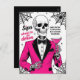 Add a bold and spooky touch to your Halloween bash with this eye-catching invitation featuring a skeleton in a sharp pink suit holding a cocktail. Surrounded by cobwebs and gothic details, this design is perfect for costume parties, Halloween cocktail nights, and haunted celebrations. A stylish and fun way to invite guests to your spooky soirée.