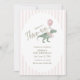 Stomp on over for a dino good time with this “Three Rex” birthday invitation featuring a watercolor Pink T-rex with a balloon and soft Pink striped background. Perfect for boys who love dinosaurs. Personalize all text for an unforgettable prehistoric birthday celebration.