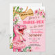 Pink Three Rex On The Loose Third Birthday Inbjudningar