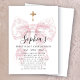 Pink Toile Bow Cross Girl First Communion Inbjudningar