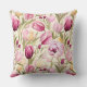 This accent throw pillow is shown with a lovely pink tulip print.
