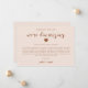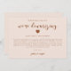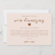 Enkel och modern brölloppsuppdateringskort med rosa och jordnära färger med ett skrivet text som säger "vi gör bröllopet mindre" med ett hjärta. Kortet förklarar hur det var ett svårt beslut men nödvändigt för att prioritera gästernas hälsa och välbefinnande.