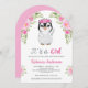 Pink Watercolor Floral Penguin Baby Shower Inbjudningar