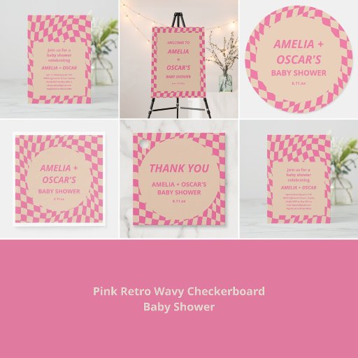 Pink Retro Wavy Checkerboard Baby ShowerDesignad av Opal Ellery