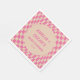 This couples baby shower napkin features a bold wavy checkerboard pattern in hot pink and cream with the couple's names and date in the center. The warped checker print is a fun, on-trend choice that feels current and playful without taking itself too seriously. Customize with any names and date to match your full party setup. Perfect for a colorful, modern baby shower that wants a little personality on the table.