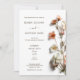 This contemporary modern floral wedding invitation features apricot pink white 3 dimensional wildflowers on a white gray background.