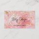 This chic business card features a pink, gold and white marbled design with gold glitter accents.