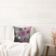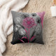 Pink, White and Black dandelion design on a black, silver and pink background couch cushion.