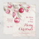 Bright pink with red and mauve highlights contrast with white to characterize our delightful decorated ornaments hanging from branches of a nice Christmas tree in this lovely vintage watercolor. The flat holiday card features the sentiment, "We Wish You A Very Merry Christmas", which is editable. Also, be sure to change the example family name and year to your own choices. On the reverse side are complimentary images and additional text and signatures. Be sure to edit these, too. If you do not want text on this reverse side, just delete the sample entries.